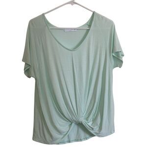 Wasabi + Mint Women's Soft Green Twist Knot V-Neck Tee Size M