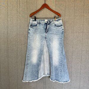 Wash Lab Denim Pieced Two Tone Sky Blue Stretch Boho Long Midi Skirt Size 32