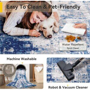 🧿Tides Series – Effortless style that flows with your life.This modern machine-washable non-slip rug features reinforced edges and a low-pile design that resists dirt. Its water-repellent surface makes spills easy to clean - liquids bead up for quick wiping. Simply machine wash in cold water (no bleach) to refresh. The non-slip backing keeps it securely in place. A perfect blend of function and contemporary design for active homes.