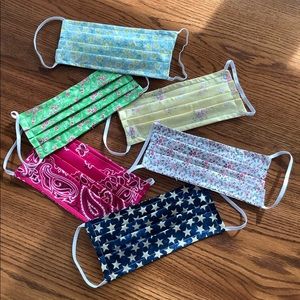 4 layers of good quality washable cotton. Stylish patterns- this is the blue with white and yellow flowers. Some patterns are limited, others we have an abundance due to what we can find in store. All masks never worn, basically made to order. Elastic band around the ears with comfortable one size fits all fitting.