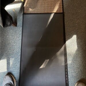 Stylish woven pattern runner rug. Features a mix of black and tan colors. This is a set of two one being 17.5-39” and the other one is 17.5-57”.