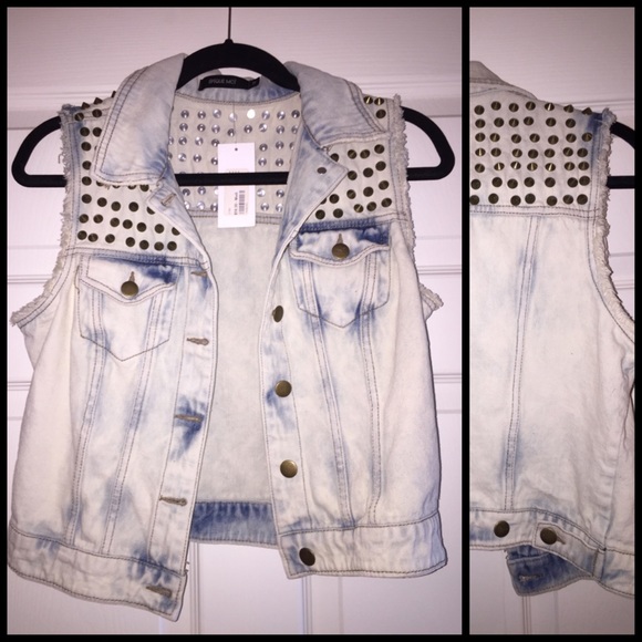 Perfect washed denim vest jacket with studs all across the top (front and back) Too big on me and that's the only reason I'm giving it up!
