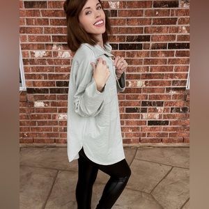Relaxed fit, flap pockets, buttons closure, makes this shacket casual but chic in this beautiful sage color.