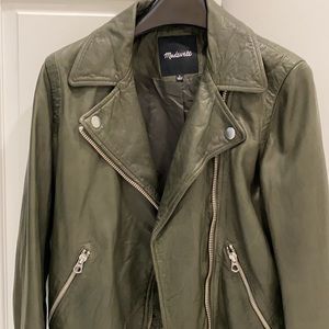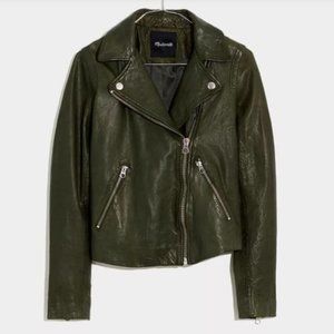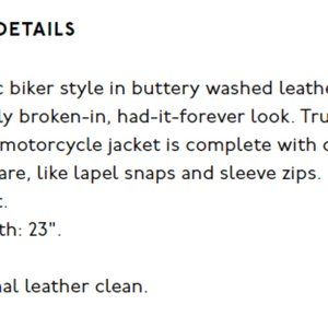 Look no further! This is the perfect leather jacket. The leather is super soft and feels worn in. I have only worn it a handful of times. It's like new! This jacket never goes on sale (I asked before I bought it) and its $500 before taxes.