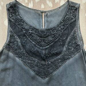 Washed Navy Tank Top with Lace Detailing Size S. Partial Open Back with Buttons.