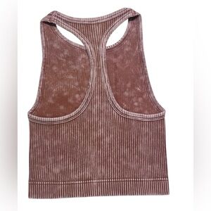 Washed Ribbed Seamless Racerback Crop Top - Deep Camel