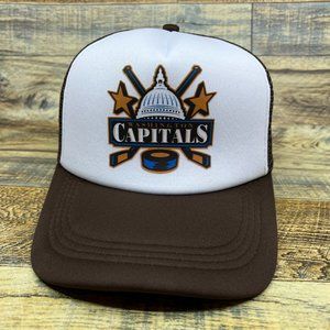 Washington Capitals Mens Trucker Hat Brown Snapback Retro Hockey Baseball Cap