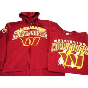 Washington Commanders NFL G-III Men's Hoodie T Shirt Combo Burgundy Gold NWT. NFL Washington Commanders G-III Men's Hoodie Sweatshirt and tee shirt combo. The hoodie has a full zipper front closure. Brand new with all original tags. Officially licensed by the NFL. Classic Commanders Burgundy and Gold in color. These are 2 MUST HAVE items for the Washington Commanders fan! The hoodie has a screen-printed Commanders logo on the front and patch on the sleeve and full zipper in front. The Tee shirt is a classic Commanders graphic on the front and plain on the back. The Tee shirt is 60% soft cotton and 40% Polyester in material. The hoodie is also cotton and Polyester in material. Fast U.S. shipping to your door. Please message us with any questions and visit our store for more great stuff! Thanks!