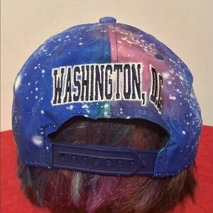 Good condition (May have never been worn (not sure?) Washington, DC Logo Blue/Purple in color Flat Bill with Galaxy/Space theme SNAPBACK W/ Adjustable strap Adult One-size-fits-all ** FROM A SMOKE-FREE ENVIRONMENT!!*^ Condition: GOOD CONDITION! (May have never been used... not sure ?). May have some minor stains/fading/bends from being stored for awhile (pictured)**. Refer to pictures for more condition detail.