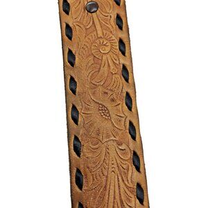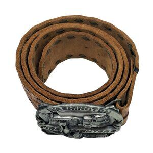 Crafted with precision, this limited edition vintage belt buckle honors the courage of Washington firefighters. Paired with a detailed tooled leather belt for timeless style. The belt is marked a size 42.