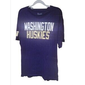 Pre-owned Washington Huskies Champion T-shirt in size Large. Official Champion Authentic Athleticwear with bold Washington Huskies graphic print across the chest and W logo on the sleeve. Perfect for showing team spirit at games, tailgates, or everyday wear.