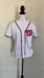Stylish white , blue and red men's baseball jersey featuring a bold design. Perfect for sports enthusiasts and casual wear.