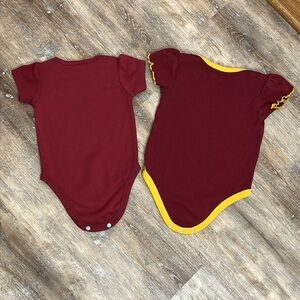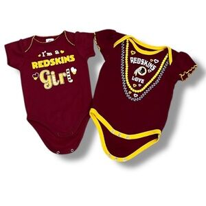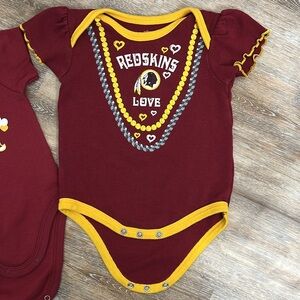Adorable Redskins baby girl one piece set in burgundy and yellow. Perfect for little fans, featuring cute designs and comfortable fit.