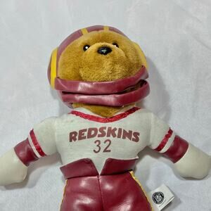 Introducing a Washington Redskins Teddy Bear, NFL official licensed football plush from 2000. This vintage collectible teddy bear features the team's iconic colors and logo, making it a perfect addition for fans and collectors alike. Condition: has some minor stains and normal wear as shown in pictures.