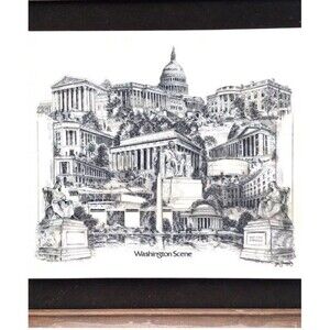 Add a touch of elegance to your home decor with this beautifully framed etching of the Washington Scene. The intricate details of the etching are sure to impress any guest. The print is produced using high-quality etching techniques and is framed to perfection.