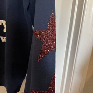 This sweatshirt was originally sold in the store LF for $350. They embellished the vintage sweatshirt with Red Glitter stars and is sold by the brand Furst of a Kind