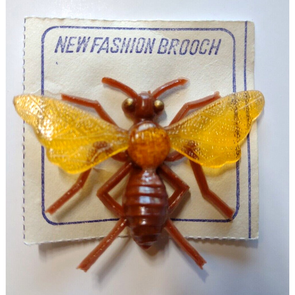 Wasp Fashion Brooch Vintage UNUSED Japan Retro Plastic Insect Pin Bug Header