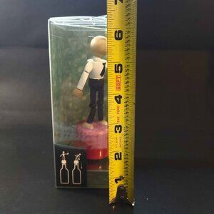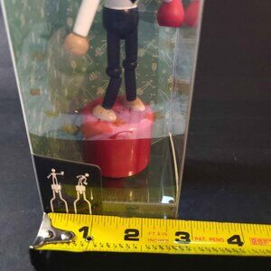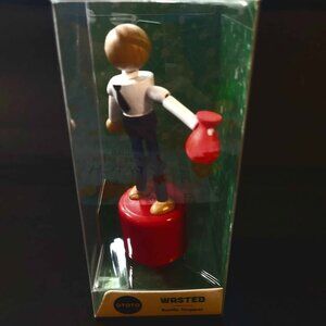 When the red button is pushed, the figure collapses as if in a "drunken slumber," signaling that the bottle is sealed.