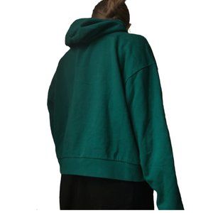 This is an emerald green cropped sweatshirt with an adjustable hood. It’s a thick, heavy material and is super soft on the inside. It has the logo on the front and on the hood (pictured). This hoodies is super well made and I purchased it at the Wasted Paris store in Paris. All pics are the same sweatshirt, the green looks a bit different in with different lightings! This can be styled with sneakers for a unique streetwear look. Wasted Paris is a small skate brand and is very up and coming on the streetwear fashion scene. Open to offers :)"
