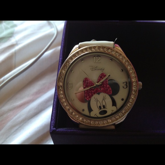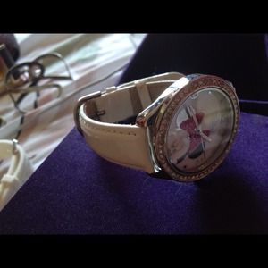 Very cute Mini Mouse watch . Mini looks adorable yet again in this white band wrest watch . With a cute pink glitter bow , this watch could be wore with everyday wear.