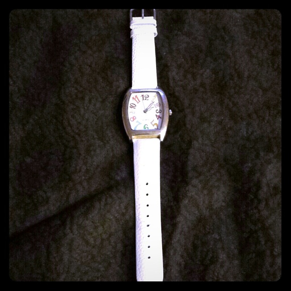 White watch with colorful numbers