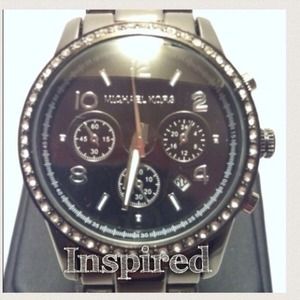 Mk watch look a like. High quality, heavy, name on face, clasp and back of watch. Bat needs replacing soon. Brand new with band still wrapped in plastic.