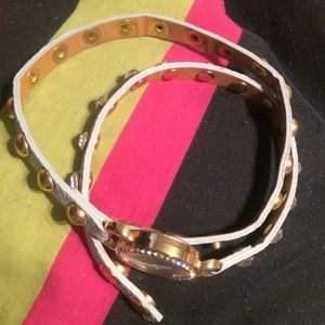 This three band watch is very trendy. The mint green band has embellishments all across it as well. Worn once.