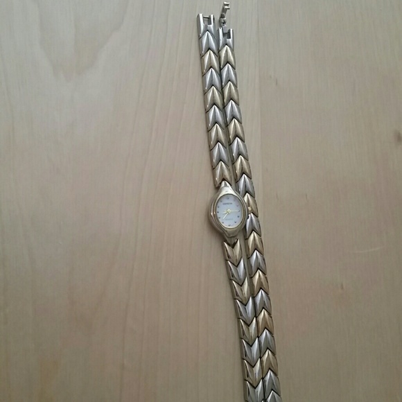 sliver and gold has a bracelet