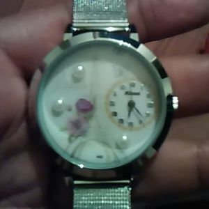 This beautiful watch has a background with the Eiffel tower with pearls and purple rose details.