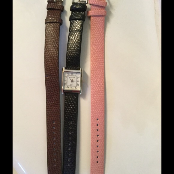 Nordstrom watch with interchangeable bands in faux leather. Needs battery.