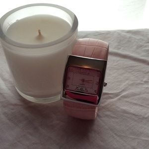 Pink croc cuff with silver toned accents. Cute watch. Needs a battery. No scratches.
