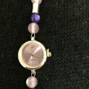 Watch made with light and dark purple glass beads.