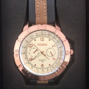 Men’s faux leather analog quartz sport watch. Lightly used