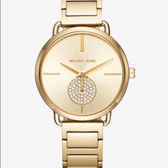Add a touch of gilded glamour to any look with our Portia gold-tone watch. Its minimalist silhouette is accented by a pavé-studded chronograph display for a chic and functional finish.