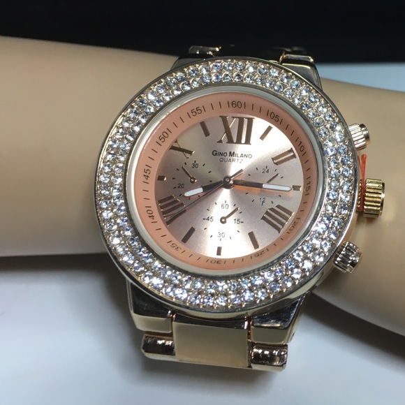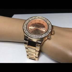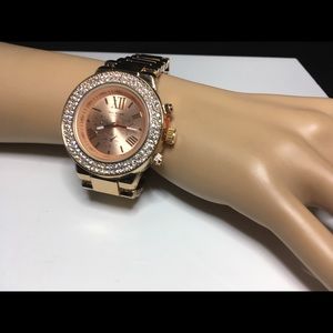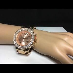 Rose gold watch with crystals