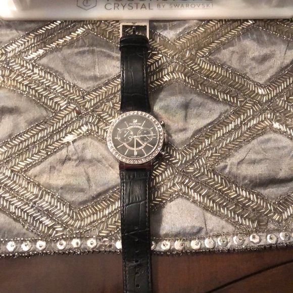 Black Swarovski crystal watch
