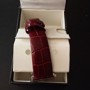 Silver with pearl face, crystal bezel and burgundy red faux alligator band