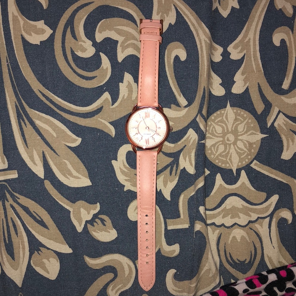 Pink band with a white and pink face with rhinestones. Only worn a couple of times, in good condition.