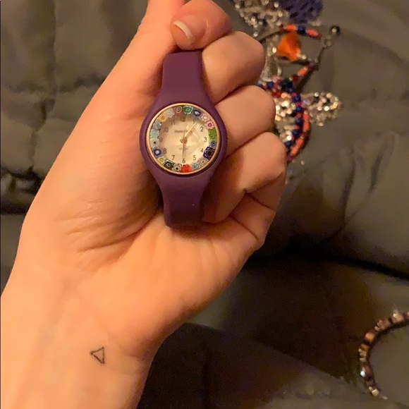 It’s a rubber purple band with a nice painted watch face.