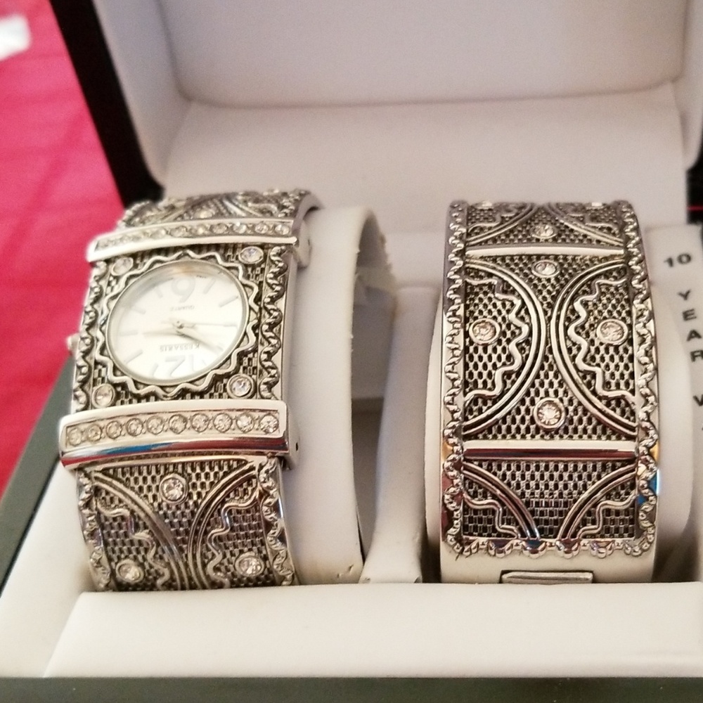 Watch and bracelet set. Silver with Crystal's. Never used.