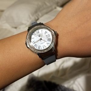 LIKE NEW/ No Scratches/ Worn twice for meeting: South Beach Diamonds Gray Silicone MOP [Mother of Pearl] Dial