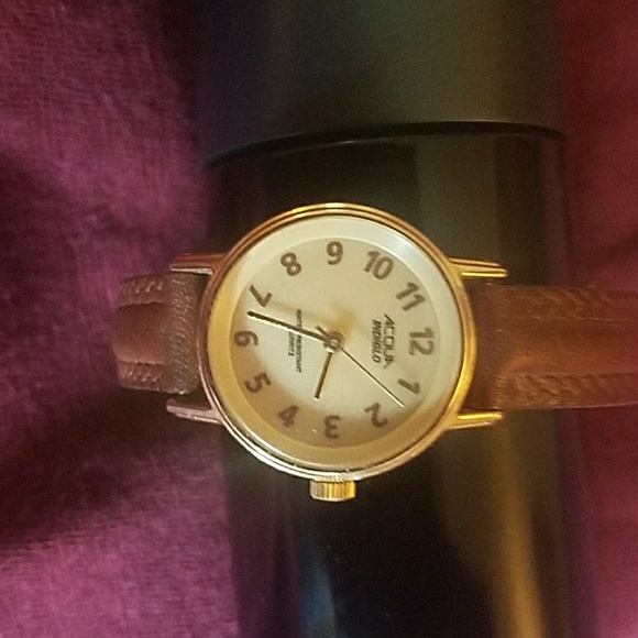 Acqua indigo watch, with leather band creamy gold face tones