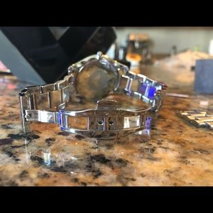 Men’s never been worn, has extra links and box. Silver bracelet with white face.