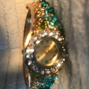 Doesn’t keep time but it’s very pretty. Teal and clear crystals