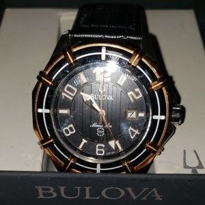 Rose gold and black Bulova watch with leather band GREAT condition.