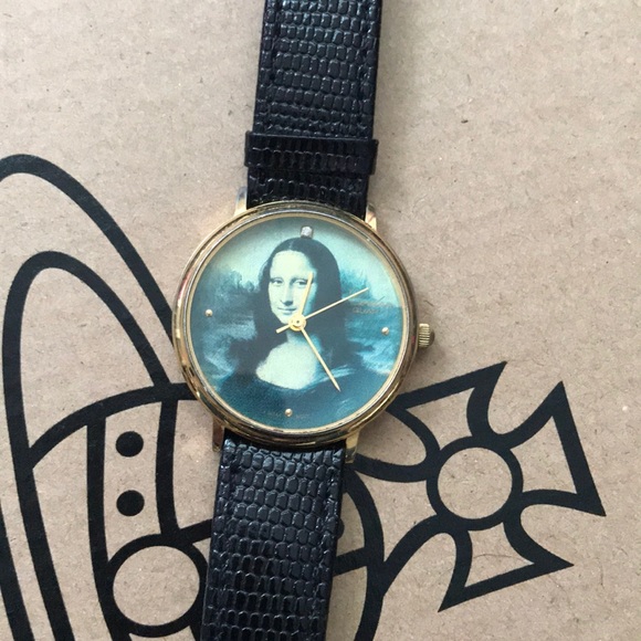 Watch with Mona Lisa face..... black band and gold accents 🖤NEEDS BATTERIES 🖤