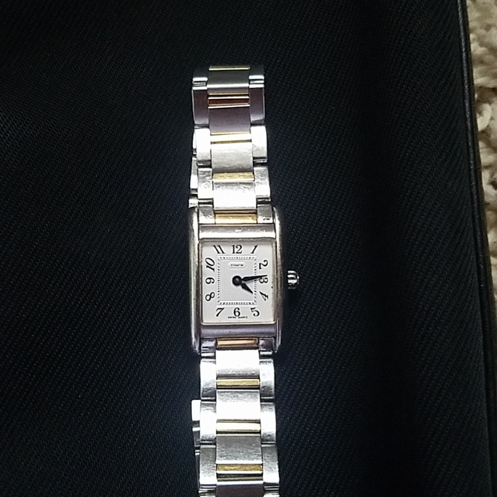 Petite womens Coach watch with lach closing. The hands are a beautiful safire blue, which is why I love this watch. Perfect for the lady in your life.