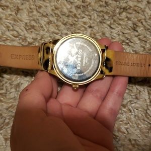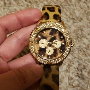 Animal print gold leather watch worn a few times with rhinestones still I good condition stainless steel water resistant.
