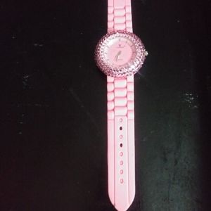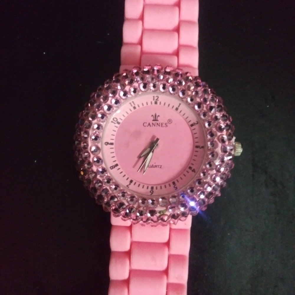 Pink rhinestone watch. With vinyl band. Never worn before.
