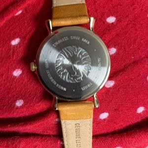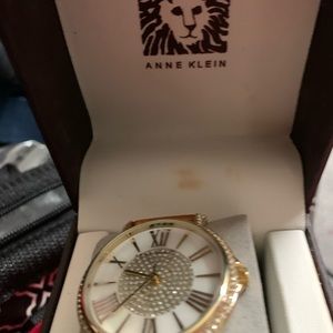 Tone Accents and beautiful taupe this elegant timepiece from Anne Klein. The coordinating taupe genuine Mother-of-Pearl with a Swarovski crystal encrusted bezel for luxurious touches.